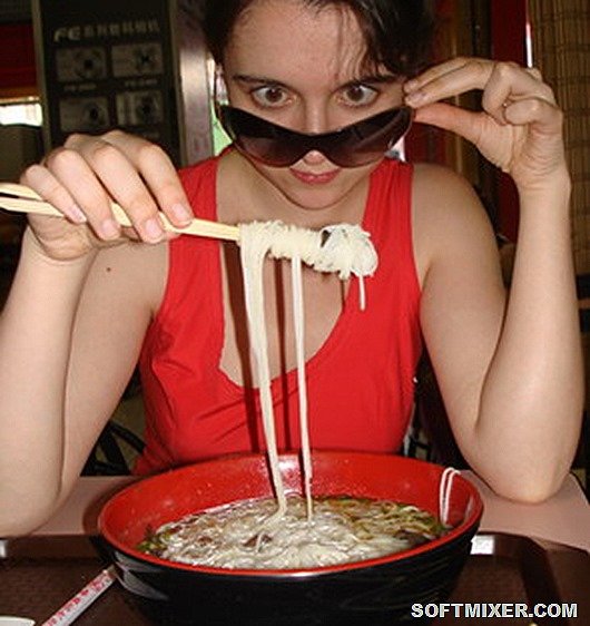 В Китае считается недопустимым разрезать лапшу во время еды. Длинная лапша олицетворяет долголетие. В случае если человек перерезает лапшу, он якобы укорачивает себе жизнь.