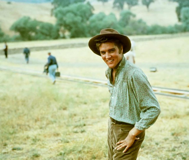 Нужно добиться успеха, пусть только чуть-чуть повезёт! Кажется, он идёт по полю, напевая песню, не хватает лишь гитары. Это — дебют Элвиса Пресли в кино: фильм «Люби меня нежно» вышел на экраны в 1956 г.