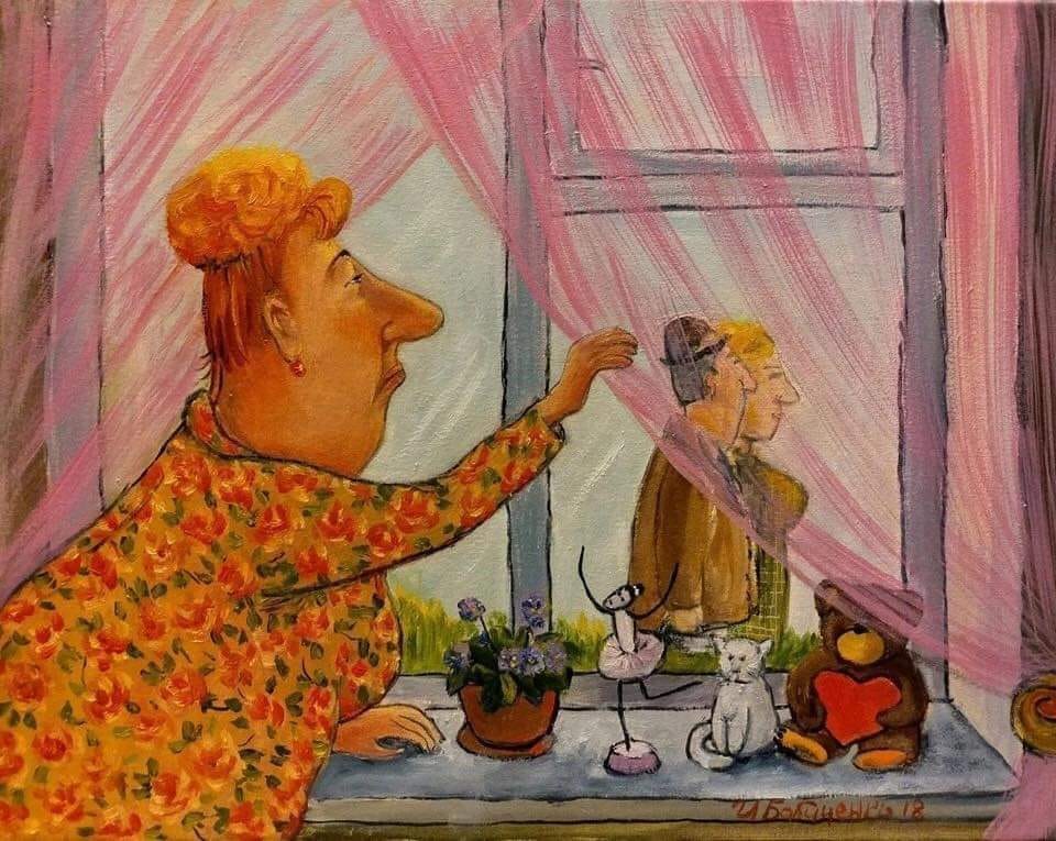 А соседка (вот натура!) вроде- рада, вроде- нет…