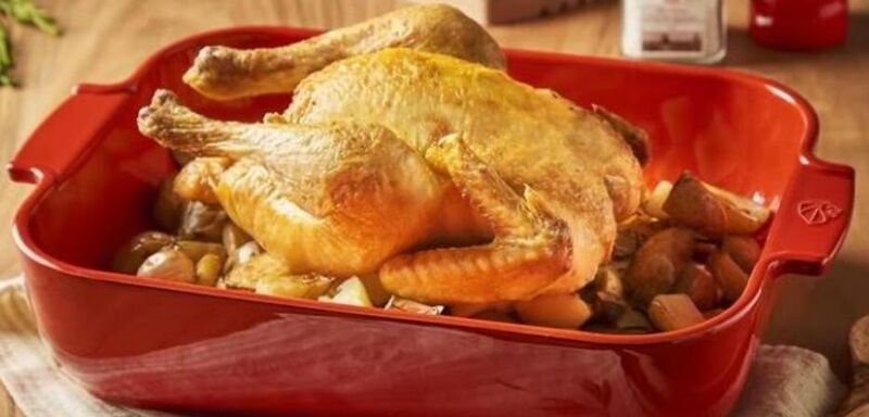 • Выложить курицу в прямоугольную форму для выпечки.