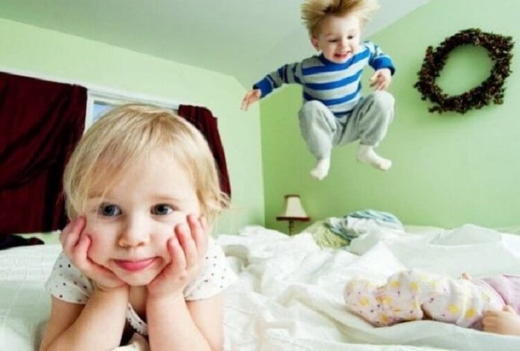 Сегодня мои придумали прыгать со шведской стенки на постеленные на полу подушки. Это вызывало у них дикий восторг!
