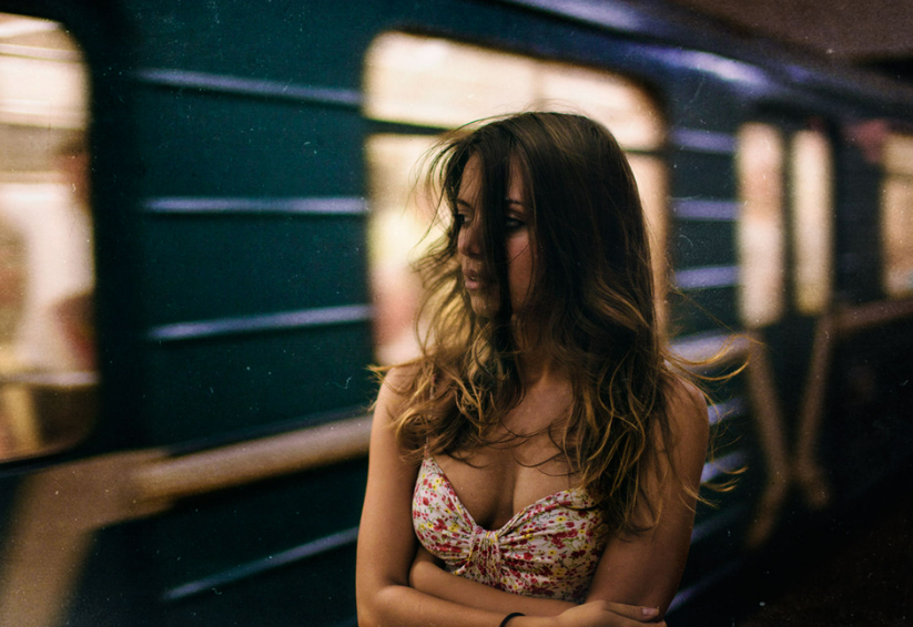 Поезд трогается, стоять становится неудобно, мужчина, как джентльмен, молча стоит, но даму уже понесло: