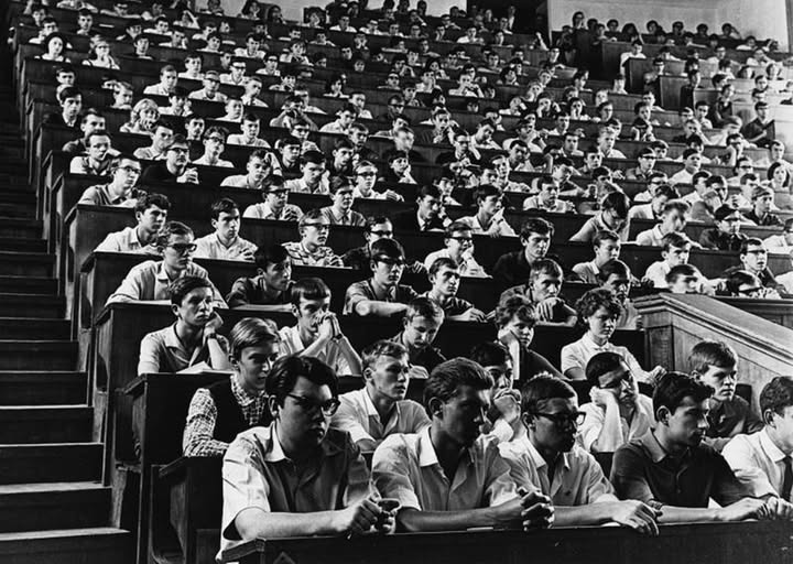 Его неохотно, но вежливо приветствовали студенты, встав со своих мест. Тогда не сейчас – тогда требование приходить на лекцию в костюме или хотя бы в пуловере поверх сорочки с галстуком (для студентов) и в платье или в блузке под пиджаком делового стиля (для студенток) ещё не считалось измывательством и травмой. Короче говоря, студенты встали, потом сели, преподаватель подошёл к доске, взял кусок мела, написал «Социальная статистика» и обернулся к аудитории.