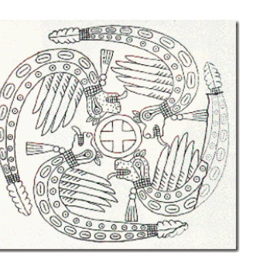 Фреска на стеле изображает женщину, вступающую в загробный мир, на одежде усопшей также красуется свастика. Вращающийся крест украшает и золотые гирьки для весов, принадлежавшие жителям Ашанты (Гана), и глиняную утварь древних индейцев, и ковры персов.