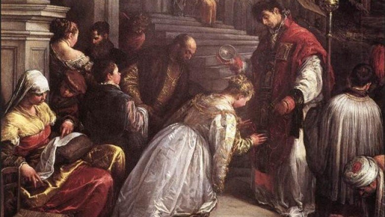 В живописи святой Валентин всегда был немного бедным родственником: его рисовали куда реже, чем святого Себастьяна, святого Антония или, к примеру, святую Агату. Должно быть, до того, как за ним закрепилась слава покровителя влюбленных, его деяния казались художникам скудноватыми по части зрелищности и сюжета. А после — виновника торжества вытеснила «из кадра» светская составляющая праздника.
