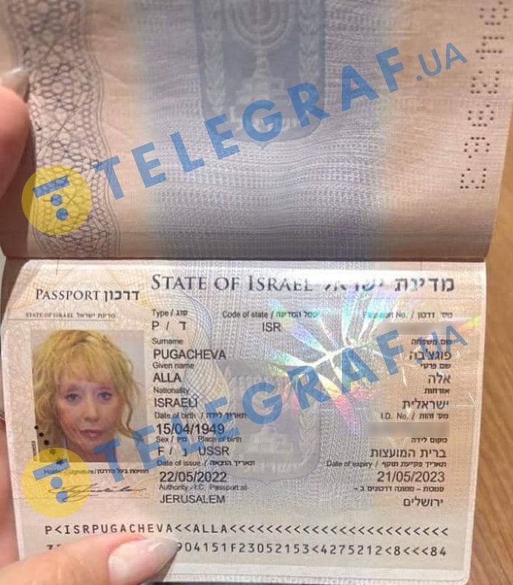 В распоряжении "Телеграфа" оказалась фотография израильского паспорта (даркона) Аллы Пугачевой, которая в четверг вместе с детьми вылетела из России.
